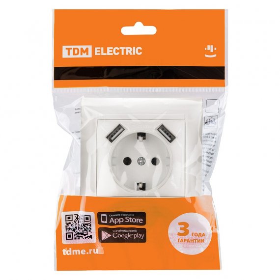 Tdm SQ1815-0842 Розетка 2П+З 16А 250В + 2 USB порта 2,1А 5В