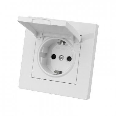 Розетка 2П+З 16А 250В IP44 с защ. шт. с крышкой белая "Сенеж" TDM