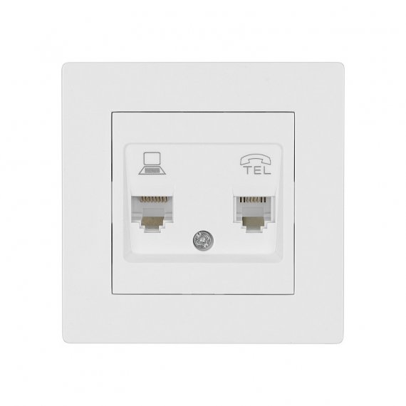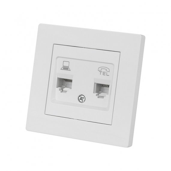 Розетка телефонная RJ11 + компьютерная RJ45 белая "Сенеж" TDM