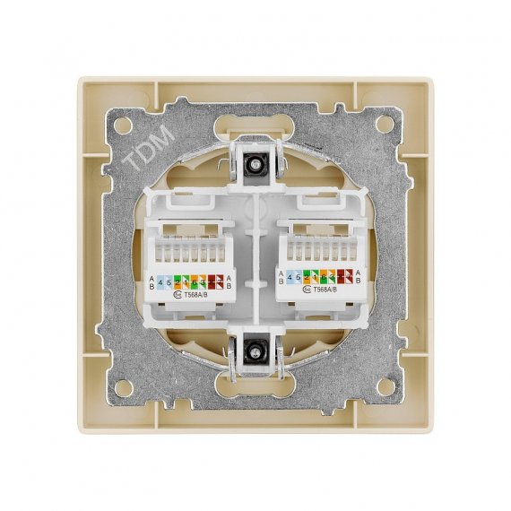 Двойная розетка компьютерная RJ45 от TDM в цвете слоновая кость идеально подойдет для подключения вашего компьютера к интернету. Модель входит в серию SQ1816-01 и доступна для заказа.