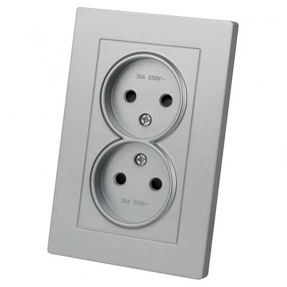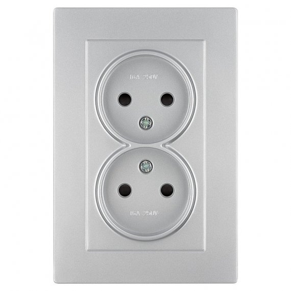 Розетка двойная 2П 10А 250В с защ. шт. серебр. металлик "Сенеж" TDM