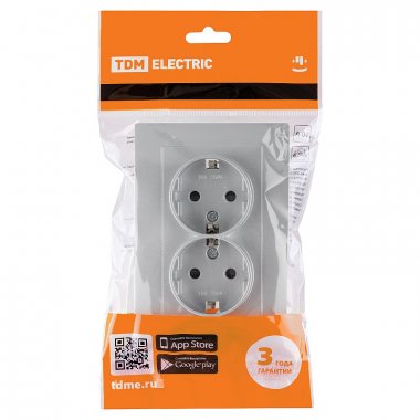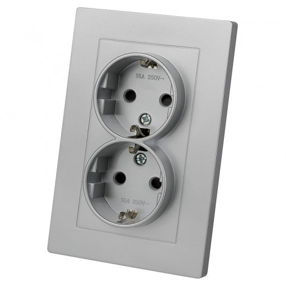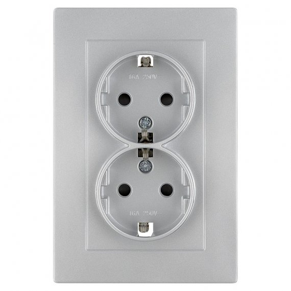 Розетка двойная 2П+З 16А 250В с защ. шт. серебр. металлик "Сенеж" TDM
