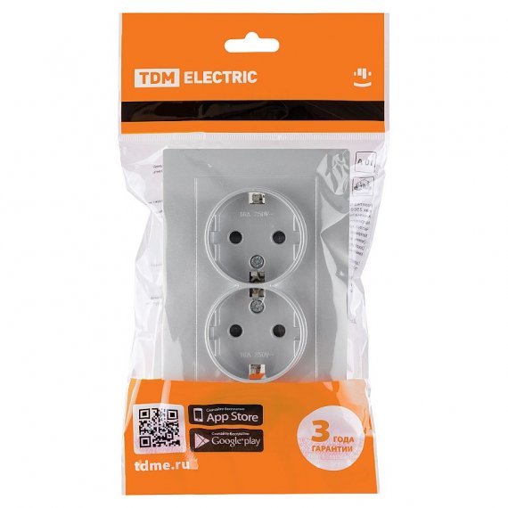Розетка двойная 2П+З 16А 250В с защитными шторками от TDM идеально подойдет для любого современного интерьера благодаря своему стильному серебристому металлическому корпусу. Эта модель оснащена заземлением и защитными шторками, что обеспечивает безопасность использования. Монтаж розетки осуществляется встроенным способом.