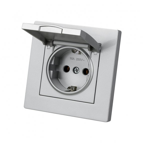 Розетка 2П+З 16А 250В IP44 с крышкой серебр. металлик "Сенеж" TDM
