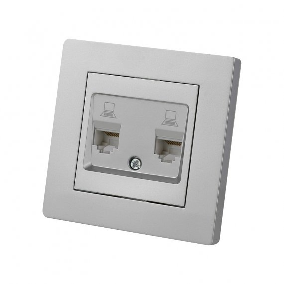 Розетка компьютерная двойная RJ45 серебр. металлик "Сенеж" TDM