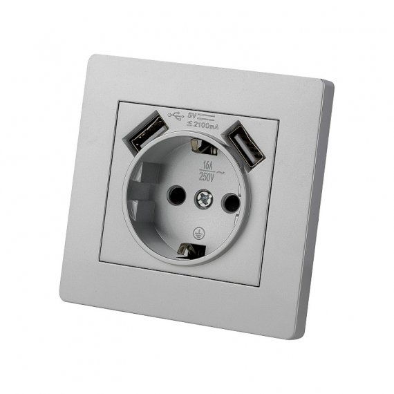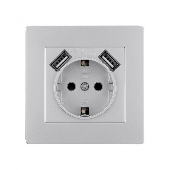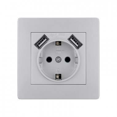 Розетка 2П+З 16А 250В + 2 USB порта 2,1А 5В серебр. металлик "Сенеж" TDM
