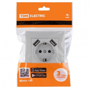 Tdm SQ1816-0253 Розетка 2П+З 16А 250В + 2 USB порта 2,1А 5В