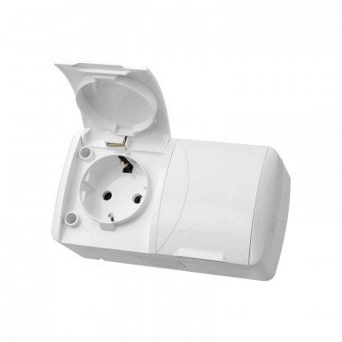 Розетка двойная 2П+3 открытой установки IP54 16А с крышкой белая "Селигер" TDM