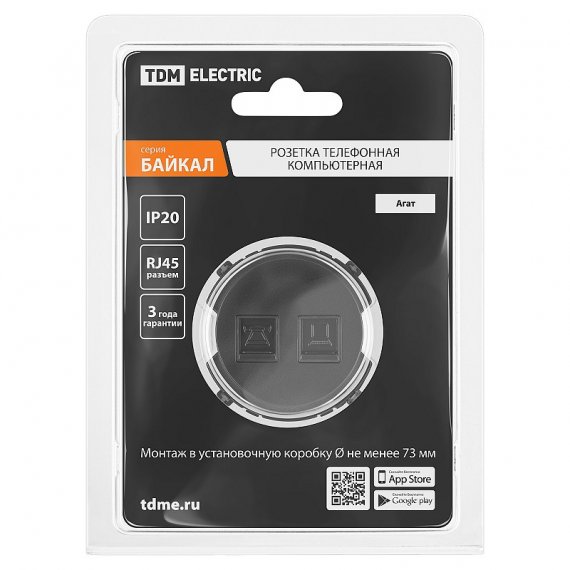 Tdm SQ1819-0217 Розетка телефонная RJ11 + компьютерная RJ45 агат, "Байкал"