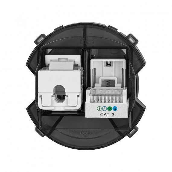 Розетка комбинированная RJ11/RJ45 от TDM, серии SQ1819-02, представлена в цвете агат. Идеально подходит для встраиваемого монтажа. Обеспечивает подключение как к телефонной линии, так и к сети Ethernet.
