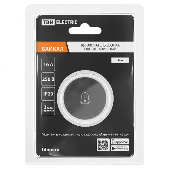 Выключатель звонка 1-кл. 16А 250В агат, "Байкал" TDM
