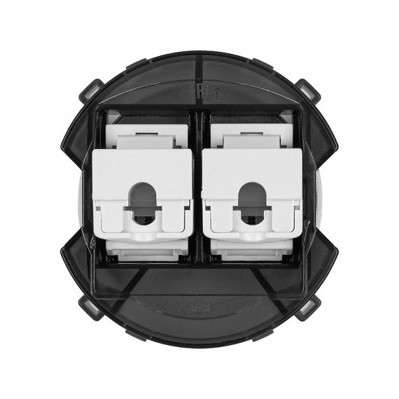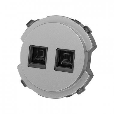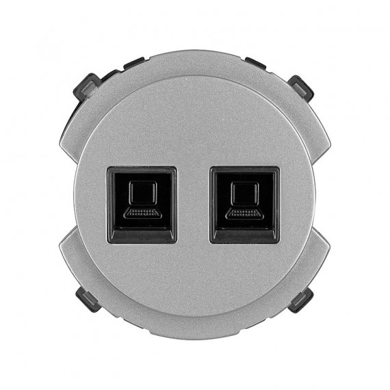 Двойная розетка компьютерная RJ45 от TDM в цвете платина идеально подходит для подключения двух устройств к интернету. Благодаря встроенному монтажу, она легко устанавливается внутрь стены. Эта модель входит в серию SQ1819-03.