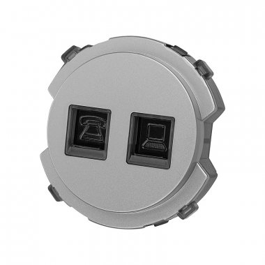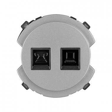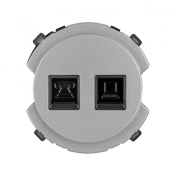 Комбинированная розетка RJ11 + RJ45 от TDM серии SQ1819-03 в цвете платина. Подходит для установки телефона и компьютера. Встраиваемый монтаж.