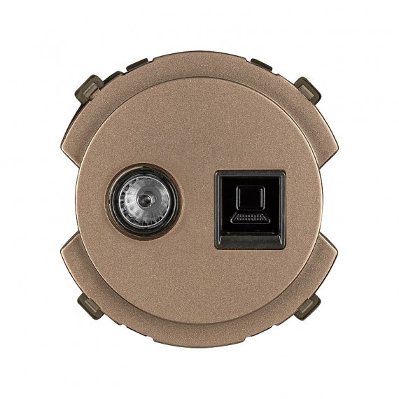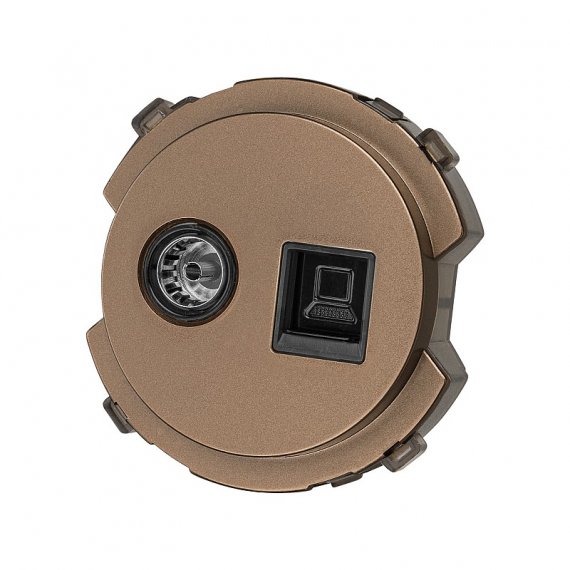 Комбинированная розетка RJ45 + TV розетка оконечная от TDM в бронзовом корпусе. Предназначена для встраиваемого монтажа. Отличное решение для подключения компьютера и телевизора.
