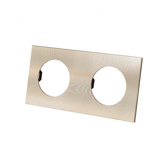 Двойная рамка шампань от TDM выполнена из текстурированного алюминия. Этот продукт идеально подходит для установки встраиваемых розеток и выключателей. Имеет два места для установки. Рамка является частью серии SQ1819-05.