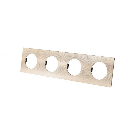 Эта рамка четверная из текстурированного алюминия в цвете шампань от бренда TDM идеально подойдет для установки во встраиваемые розетки и выключатели серии SQ1819-05. Она имеет 4 места для механизмов.