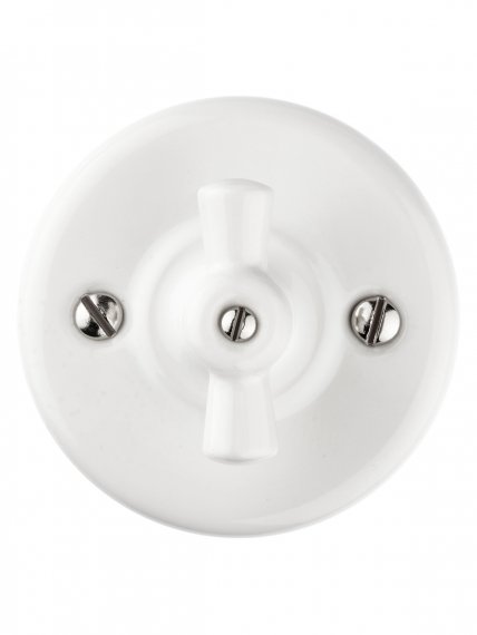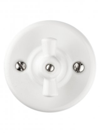 Выключатель фарфоровый поворотный 2-кл. с ручкой (бантик) 10А белый «Болонь» TDM