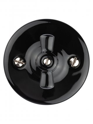 Выключатель фарфоровый поворотный перекрёстный с ручкой (бантик) 10А черный «Болонь» TDM