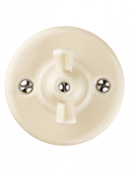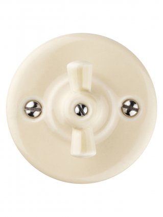 Выключатель фарфоровый поворотный проходной с ручкой (бантик) 10А сл. кость «Болонь» TDM