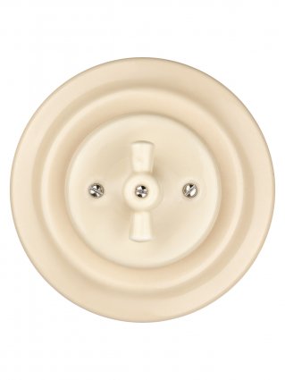 Выключатель скрытой установки фарфоровый поворотный перекрёстный с ручкой (бантик) 10А сл. кость «Бо
