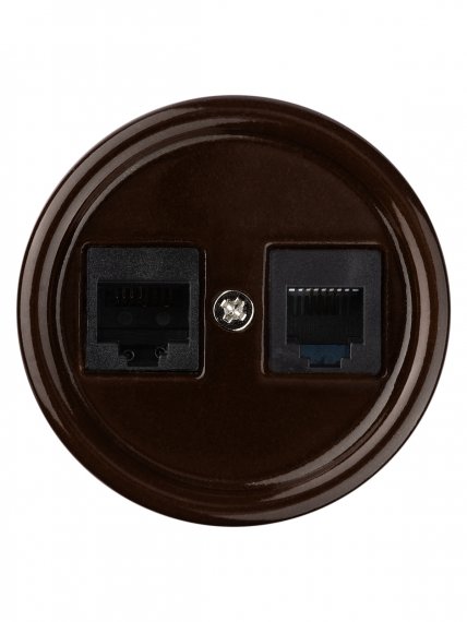 Розетка телефонная RJ11 + компьютерная RJ45 коричневая «Болонь» TDM