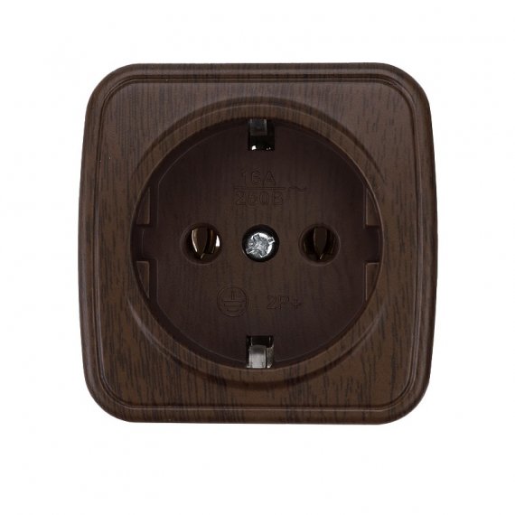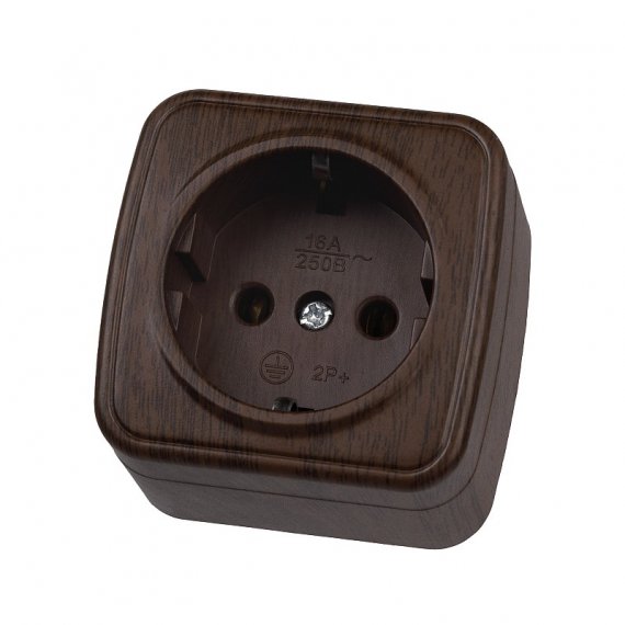 Розетка 2П+З открытой установки IP20 16А, венге "Дача" Народная