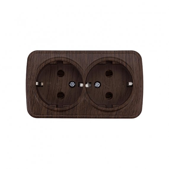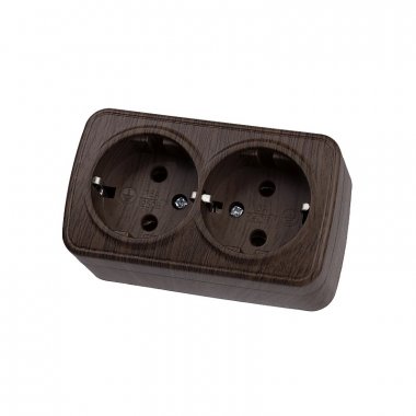 Розетка двойная 2П+3 открытой установки IP20 16А, венге "Дача" Народная