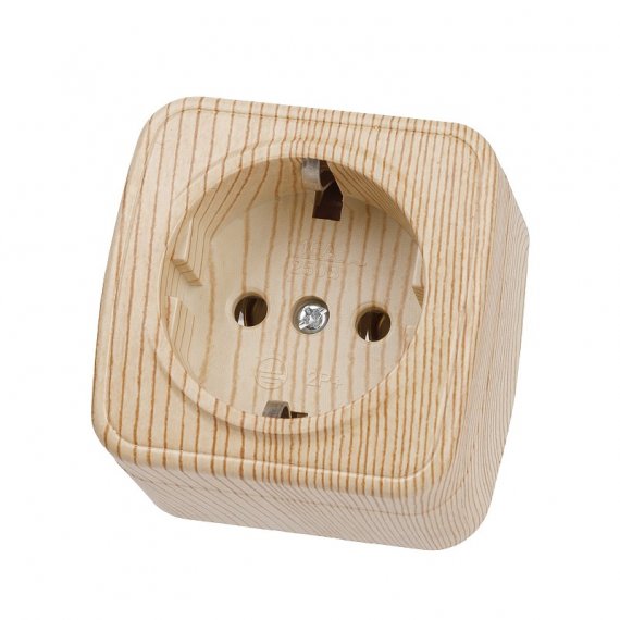 Розетка 2П+З открытой установки IP20 16А, сосна "Дача" Народная