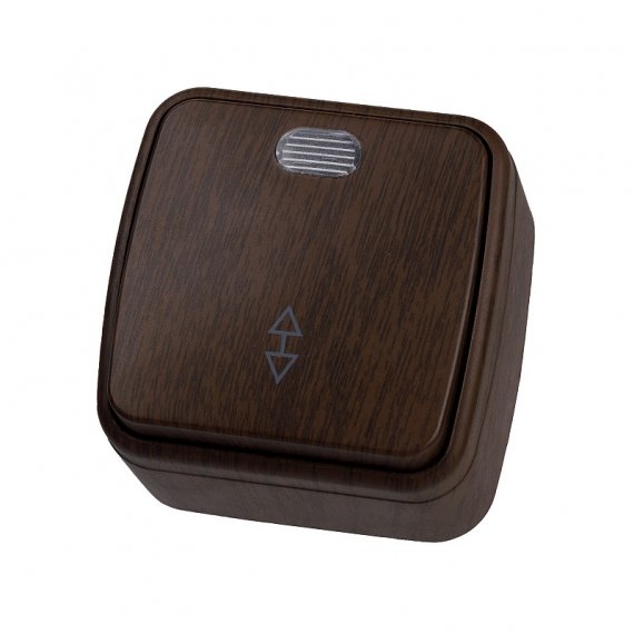 Переключатель на 2 направления 1-кл. открытой установки с подсветкой IP20 10А, венге "Дача" Народная
