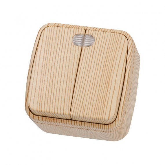 Выключатель 2-кл. открытой установки с подсветкой IP20 10А, сосна "Дача" Народная