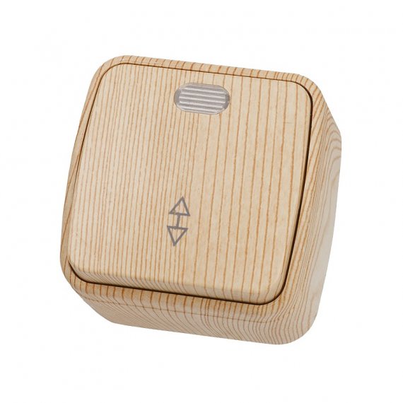 Переключатель на 2 направления 1-кл. открытой установки с подсветкой IP20 10А, сосна "Дача" Народная