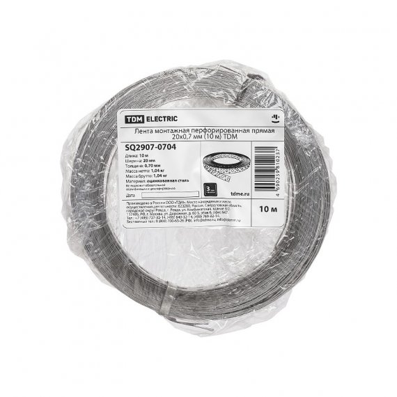 Лента монтажная перфорированная прямая 20x0,7 мм от TDM предназначена для прокладки кабельных трасс и слаботочных инженерных систем. Идеально подходит для объектов гражданского, промышленного и коммерческого строительства благодаря своей простоте и скорости монтажа. Материал изготовления - рулонная холоднокатанная сталь, соответствующая ГОСТ 14918-80.